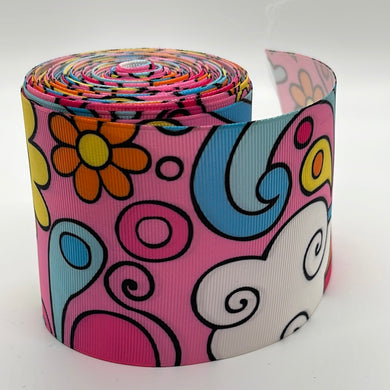 Hippie Groovy Flower Power Splash 1" Ribbon 3 yards for Hair bows and crafts