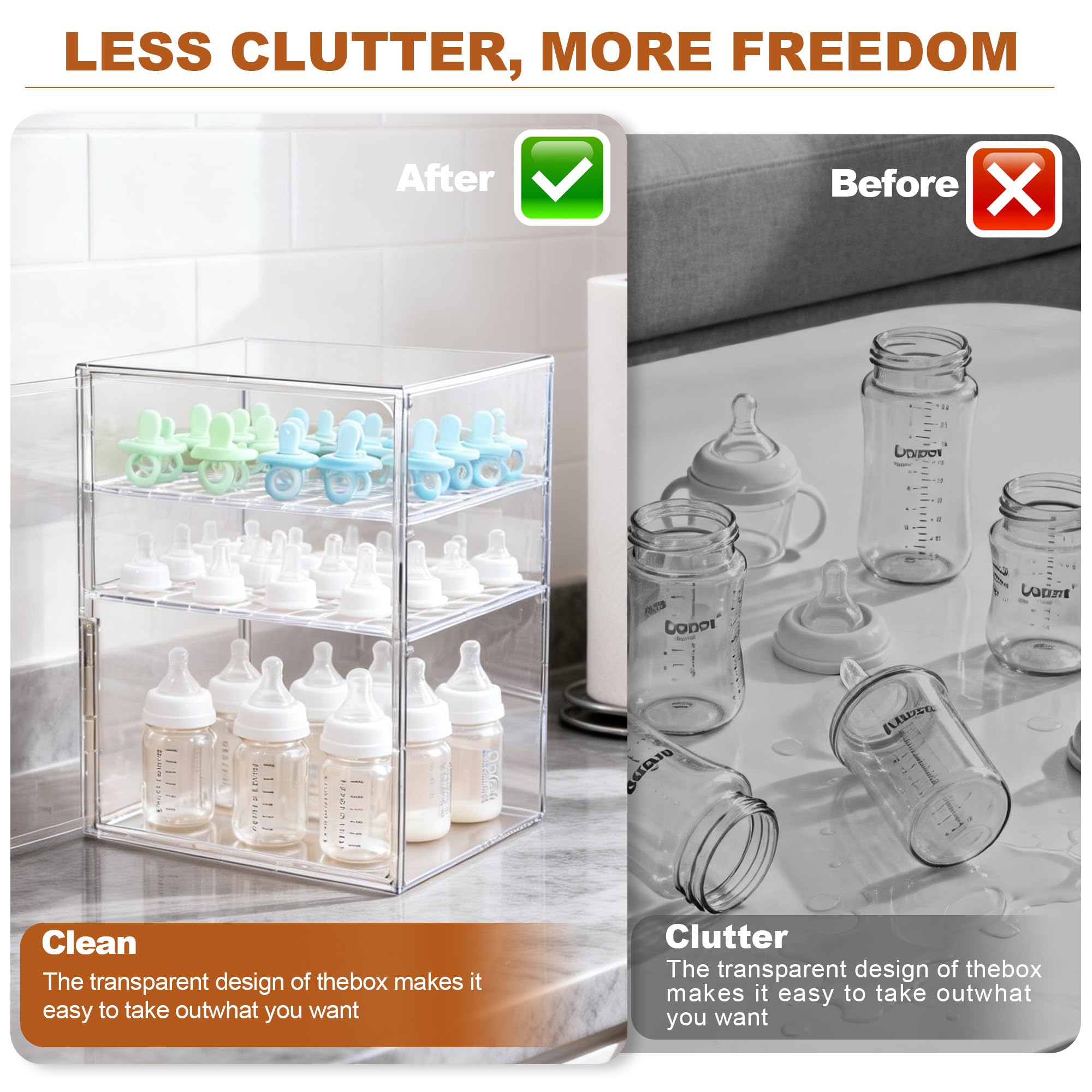 - Crystal-Clear, Durable Acrylic & Ready-to-Gift: Made from premium, clear acrylic for instant visibility and protection from dust and moisture. Sets up in minutes with no tools required. An ideal, thoughtful baby shower gift that supports parents from newborn through weaning, offering lasting baby organizers and storage utility.