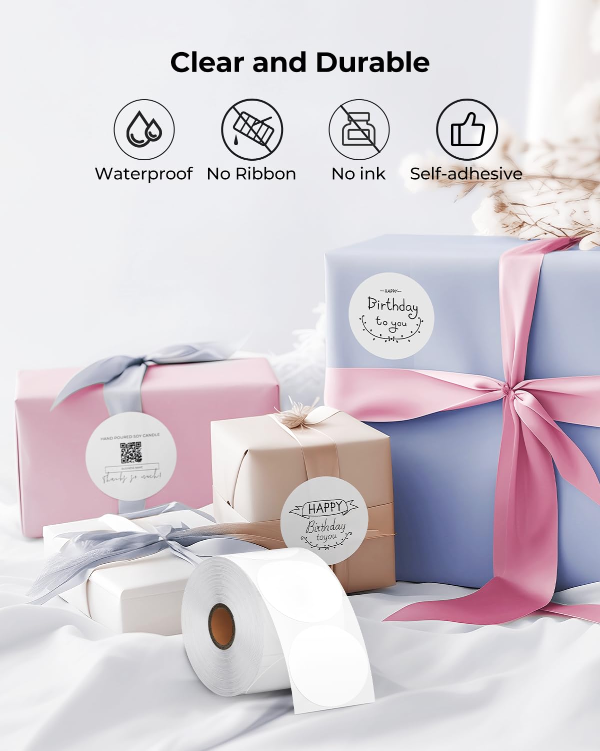 - Specifications: Authentic Munbyn labels. Round thermal sticker with the size: 2" circle (750 labels/roll, 1 roll, white), paper tube diameter:1.19"(30mm) paper roll diameter:3.35"(85mm). No ink toner or ribbons are needed!