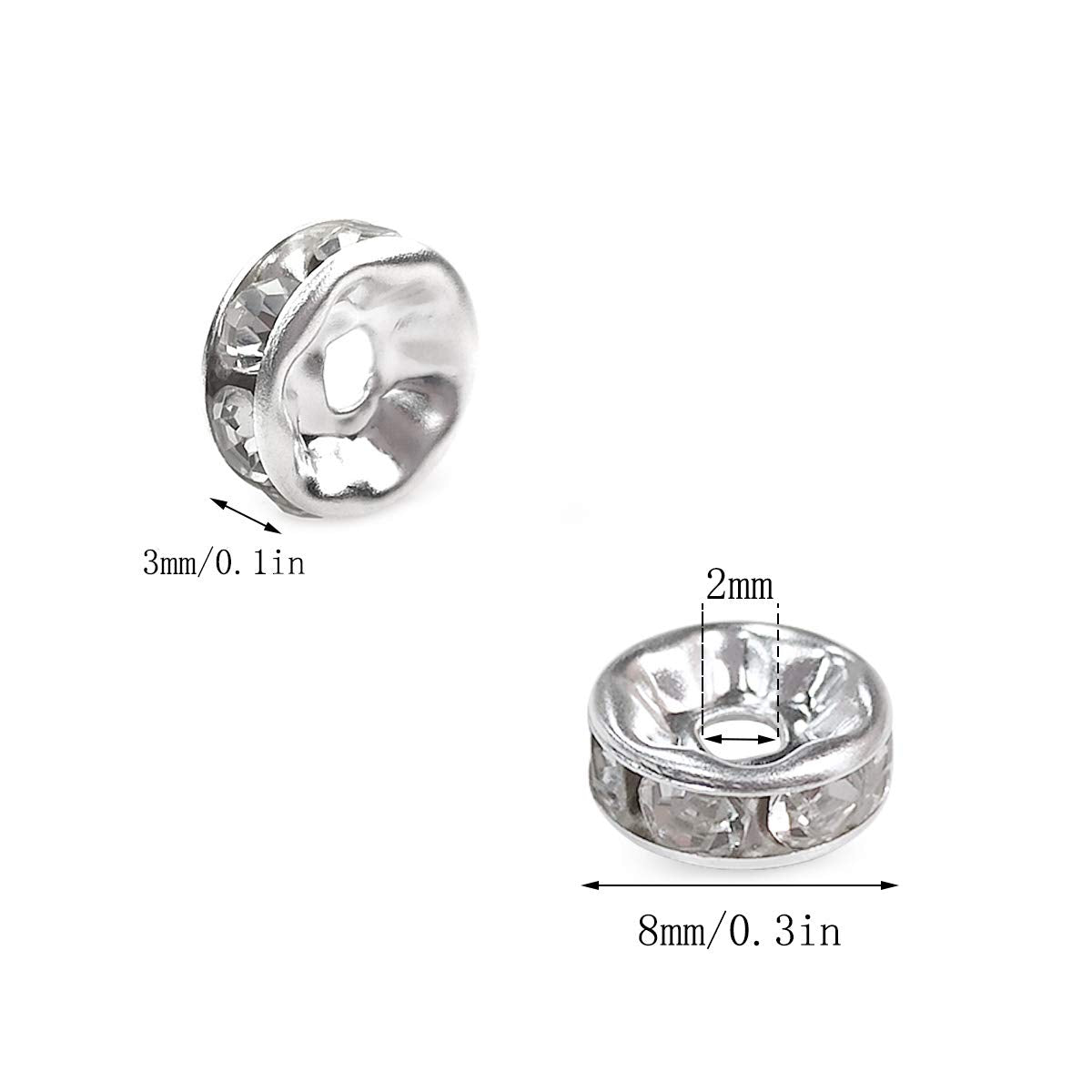 - Each crystal spacer beads measures 8 mm in diameter, 3 mm in thickness, 2 mm for hole diameter.