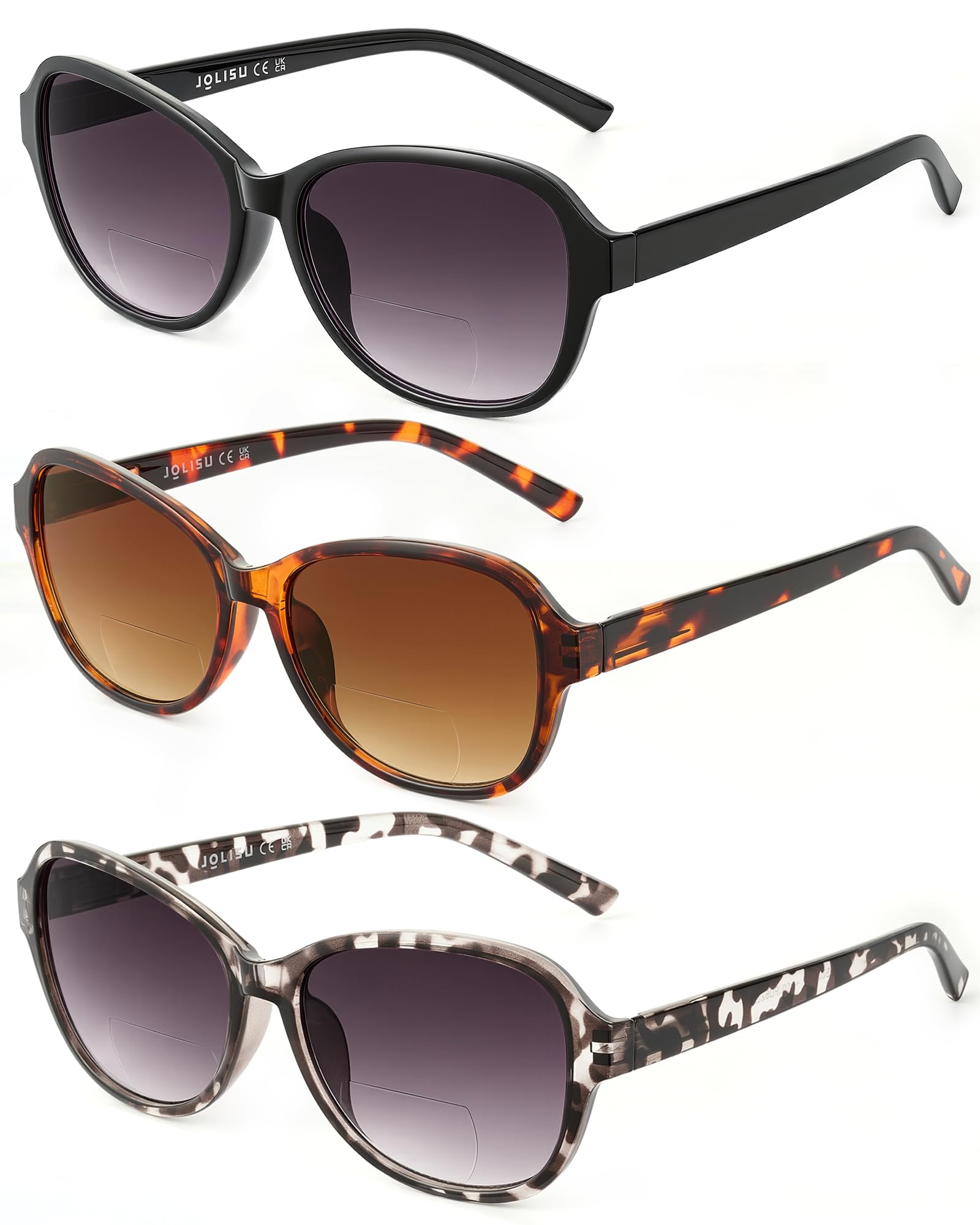 • Load image into Gallery viewer, JOLISU 3 Pack Bifocal Reading Sunglasses for Women,2 in 1 Sun Readers with Spring Hinge & UV400 Protection (2.00)