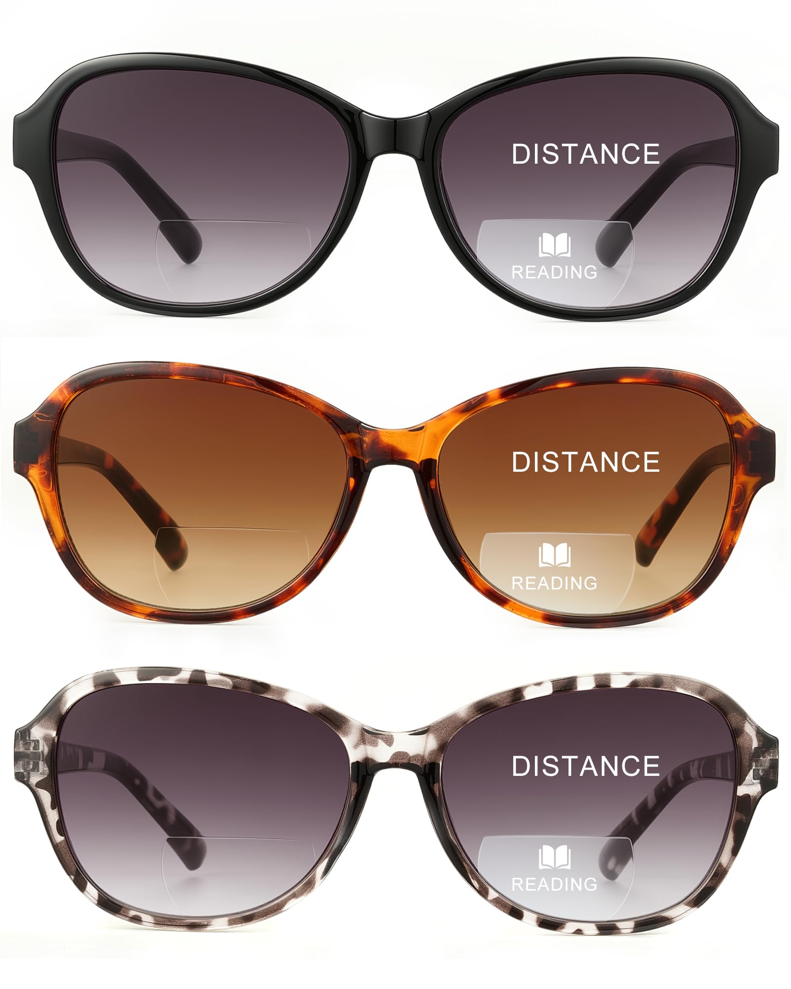 JOLISU 3 Pack Bifocal Reading Sunglasses for Women,2 in 1 Sun Readers with Spring Hinge & UV400 Protection (2.00)