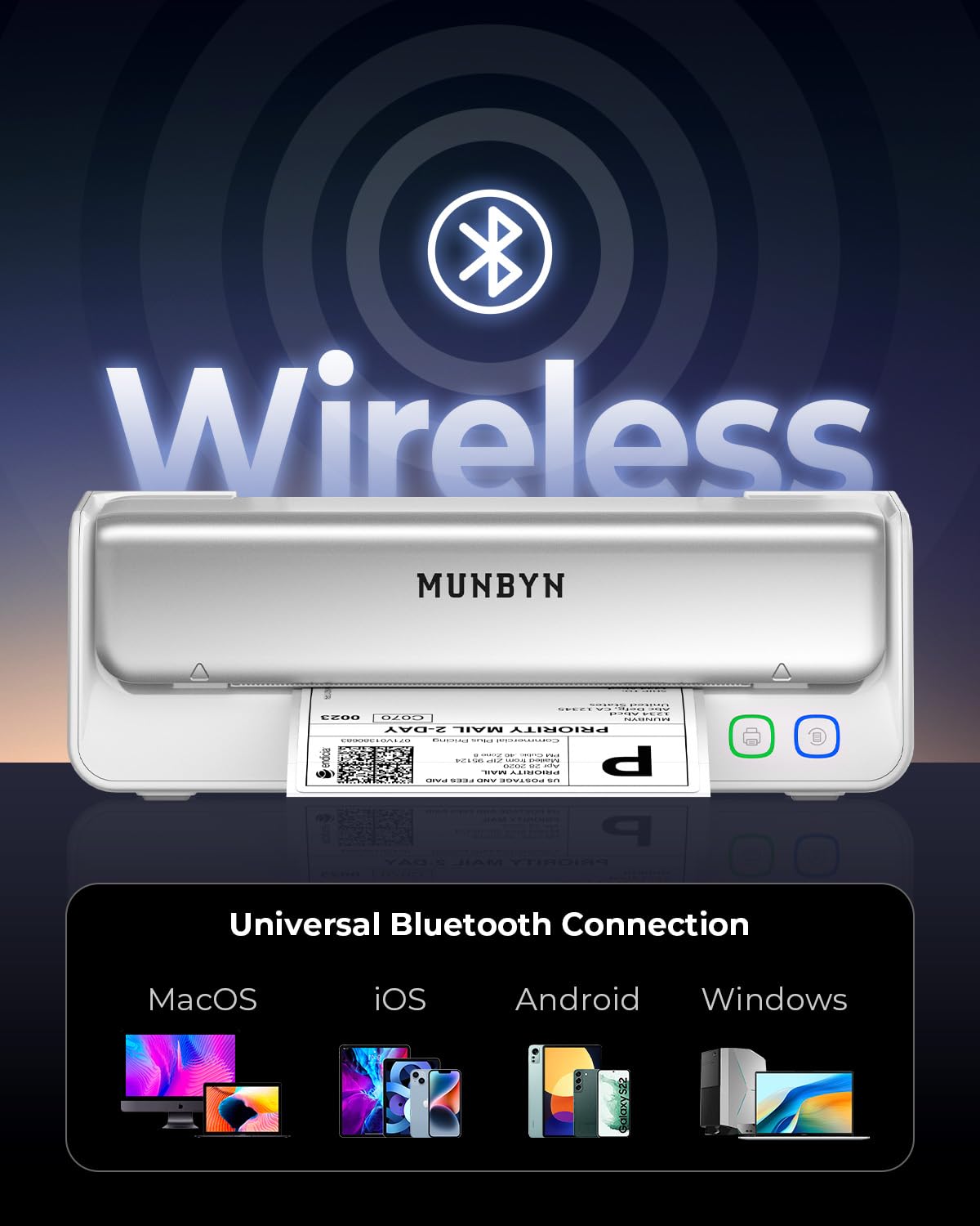 MUNBYN Replaceable Print-Head Bluetooth Thermal Label Printer with Paper Holder, RW405B, Wireless 4x6 Shipping Label Printer for Small Businesses Compatible with Mac, Windows, iPhone, Android, Chrome