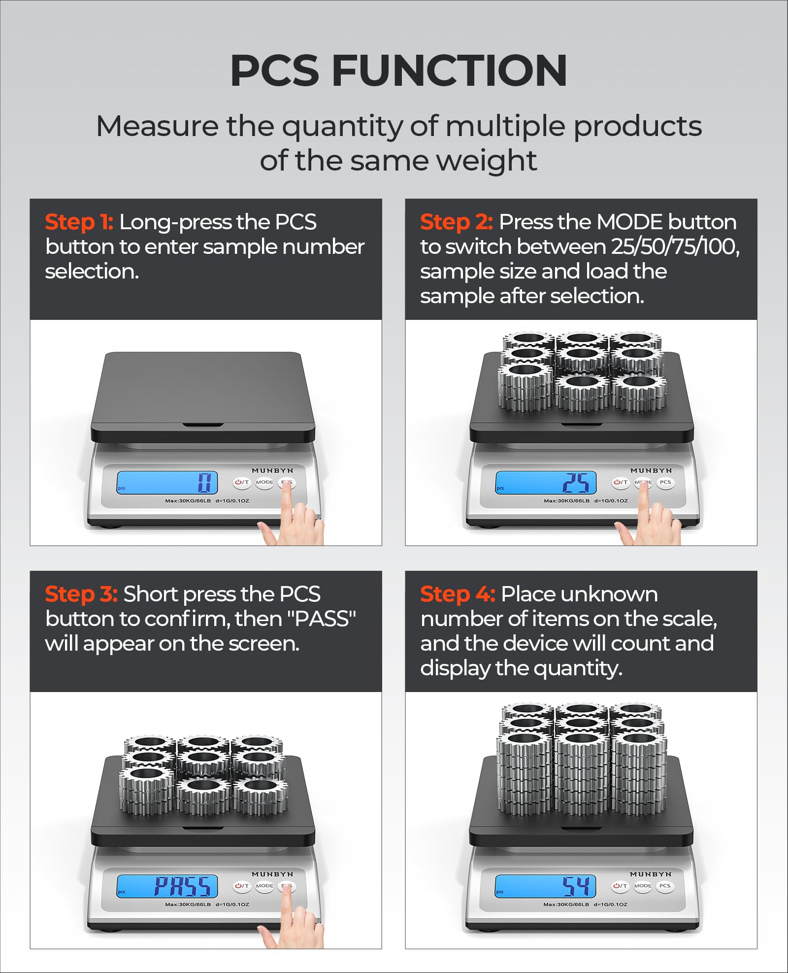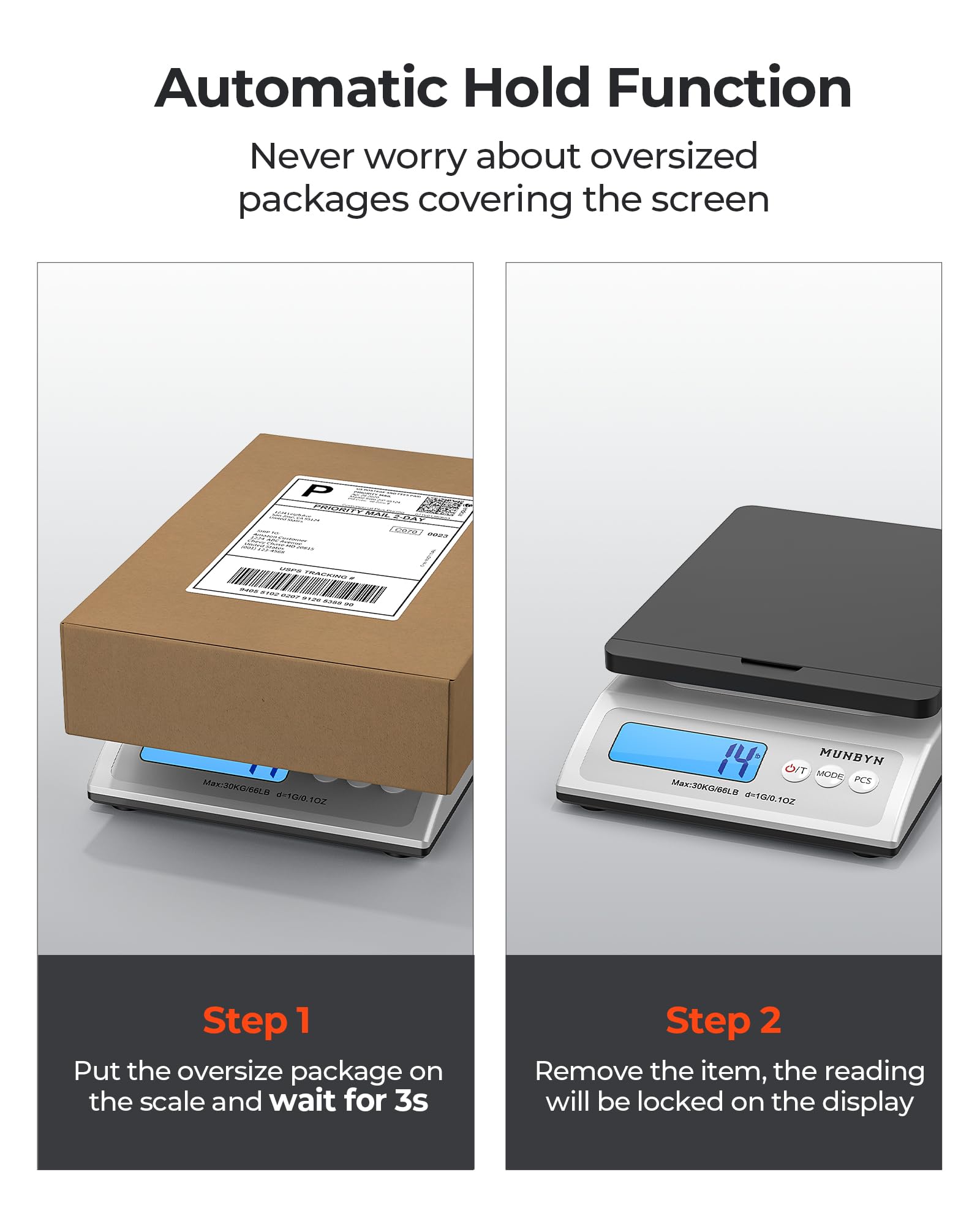- Hold, Tare & PCS Function: The hold function can be used to lock the reading automatically after flashing for 3 seconds so that even if an oversized package covers the screen, the weight can be read after the package is removed and the tare function allows you to reset the display to 0.0 when a container is placed, which you don’t want to know the weight. Also, the PCS key gets an accurate count of items of the same weight
