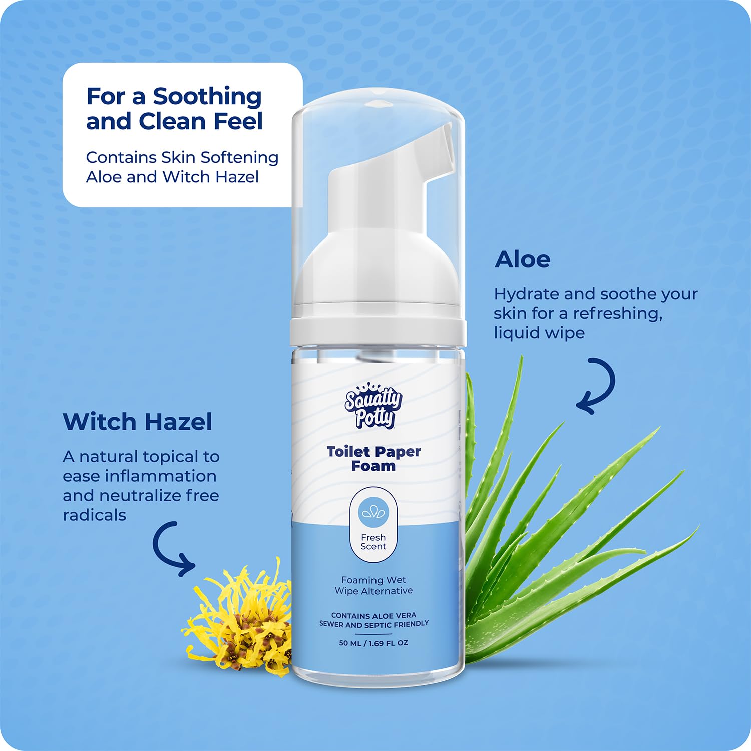 - Reduce Discomfort – Includes skin softening aloe for a gentler liquid wipe than with toilet paper alone. We added witch hazel to our wet wipe alternative to soothe and cleanse your skin.