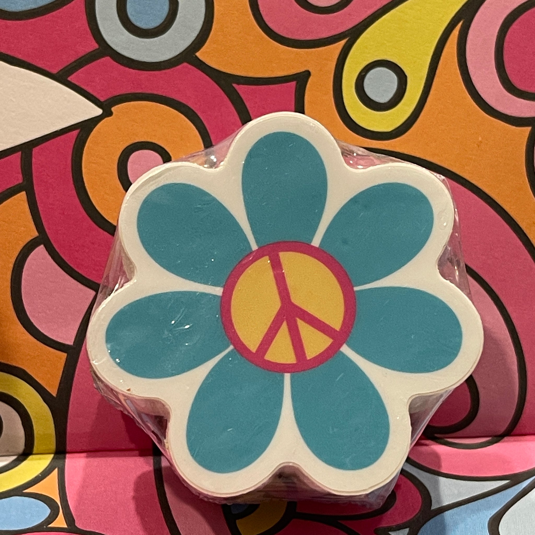 Retro Flower Stickers - Blue Groovy Retro Peace Flower 2.0" x 2.0" Die Cut