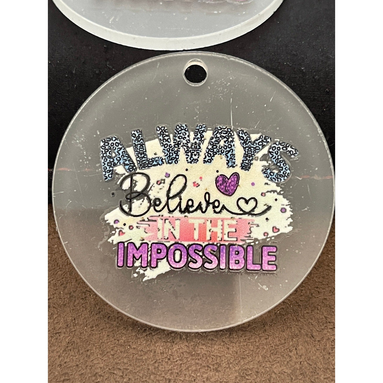 Always believe in the Impossible Women Inspirational Round Acrylic Tassel Keychains | Motivational UV Stickers & Tassel 2"