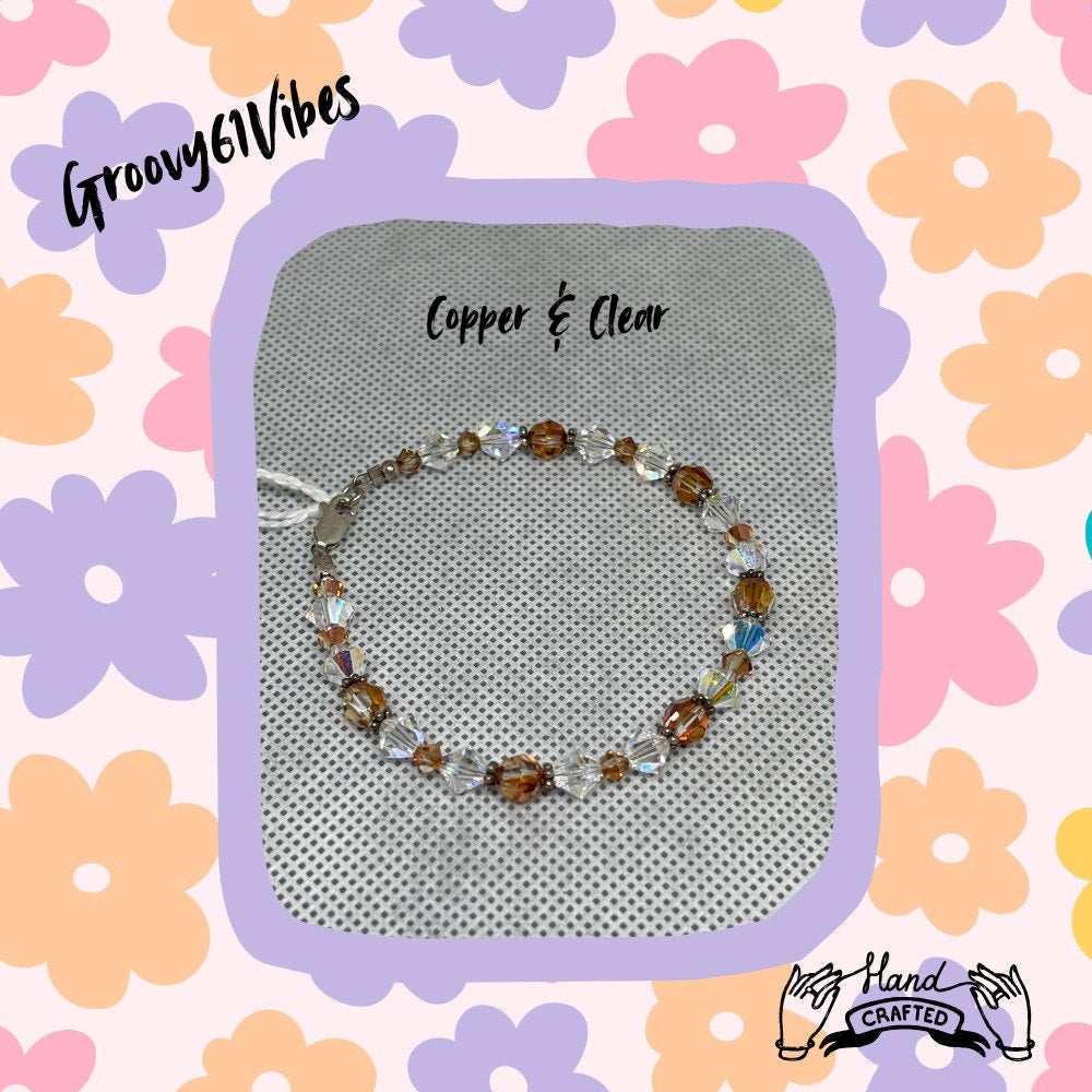 Copper Rounds Clear Bicones - Handcrafted Austrian Crystal Beaded Bracelet