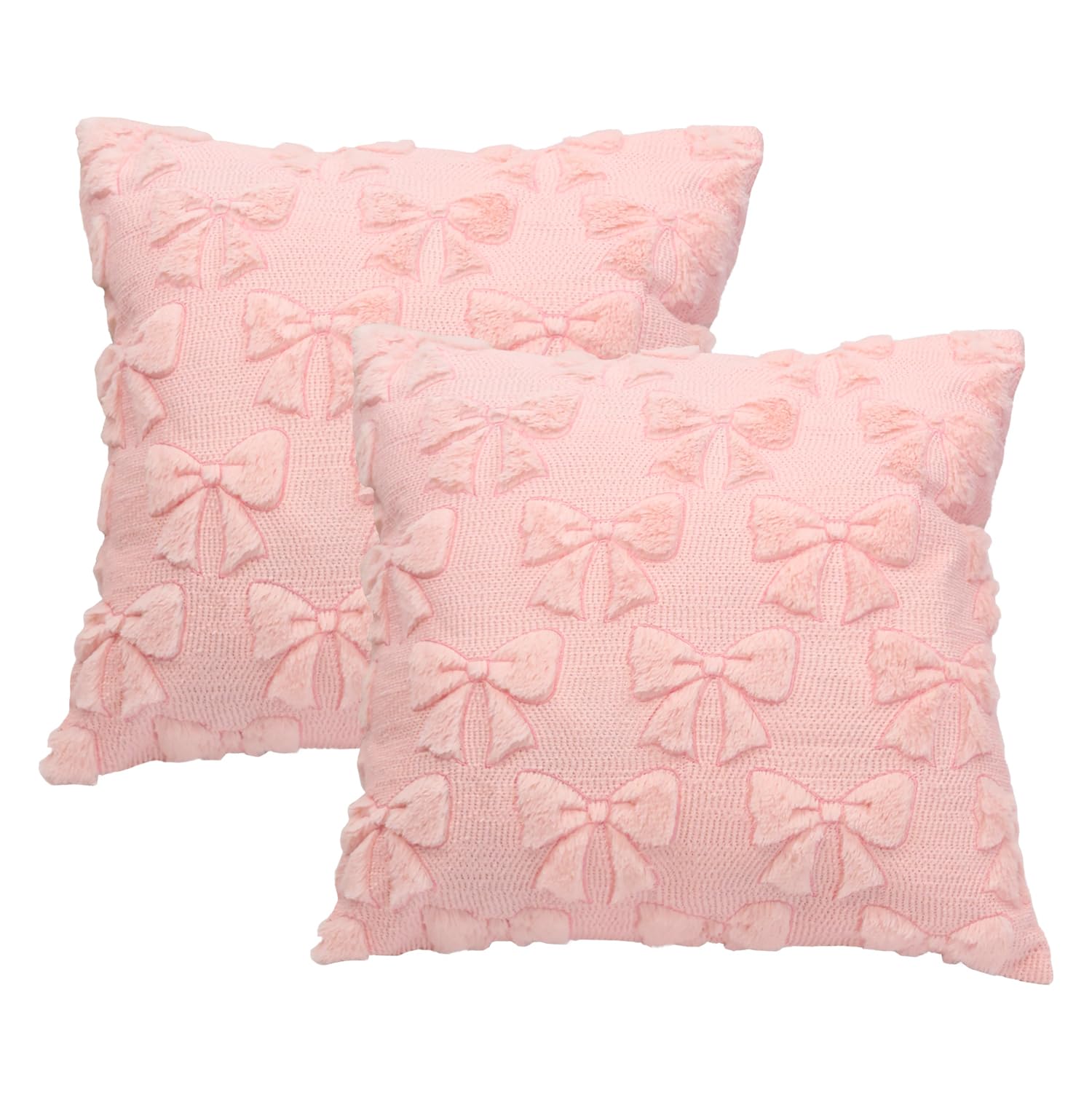 Details: Features Notice: The plush faux fur textured bow throw pillow cover is easy to maintain. Low temperature drying and avoiding the use of bleach or iron is recommended. This ensures your cushion cover 's stay. Whether you want to decorate your bedroom, living room, office, or dorm room, these multi-purpose pillowcases offer the ideal blend of functionality, style, and ease of care. Start creating your own style while simplifying your life.