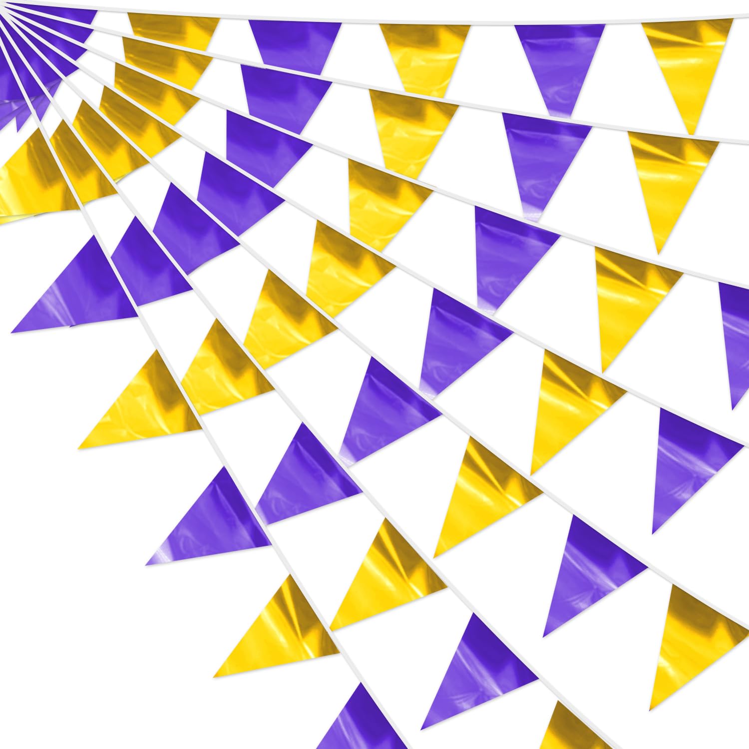 • 【Environmental Material】: Our triangle flag bunting are made of double-sided fluorescent purple and gold metallic fabric,non-fading, easy to hang, safe and odorless, soft and comfortable touch. washable and waterproof, durable and reusable.
