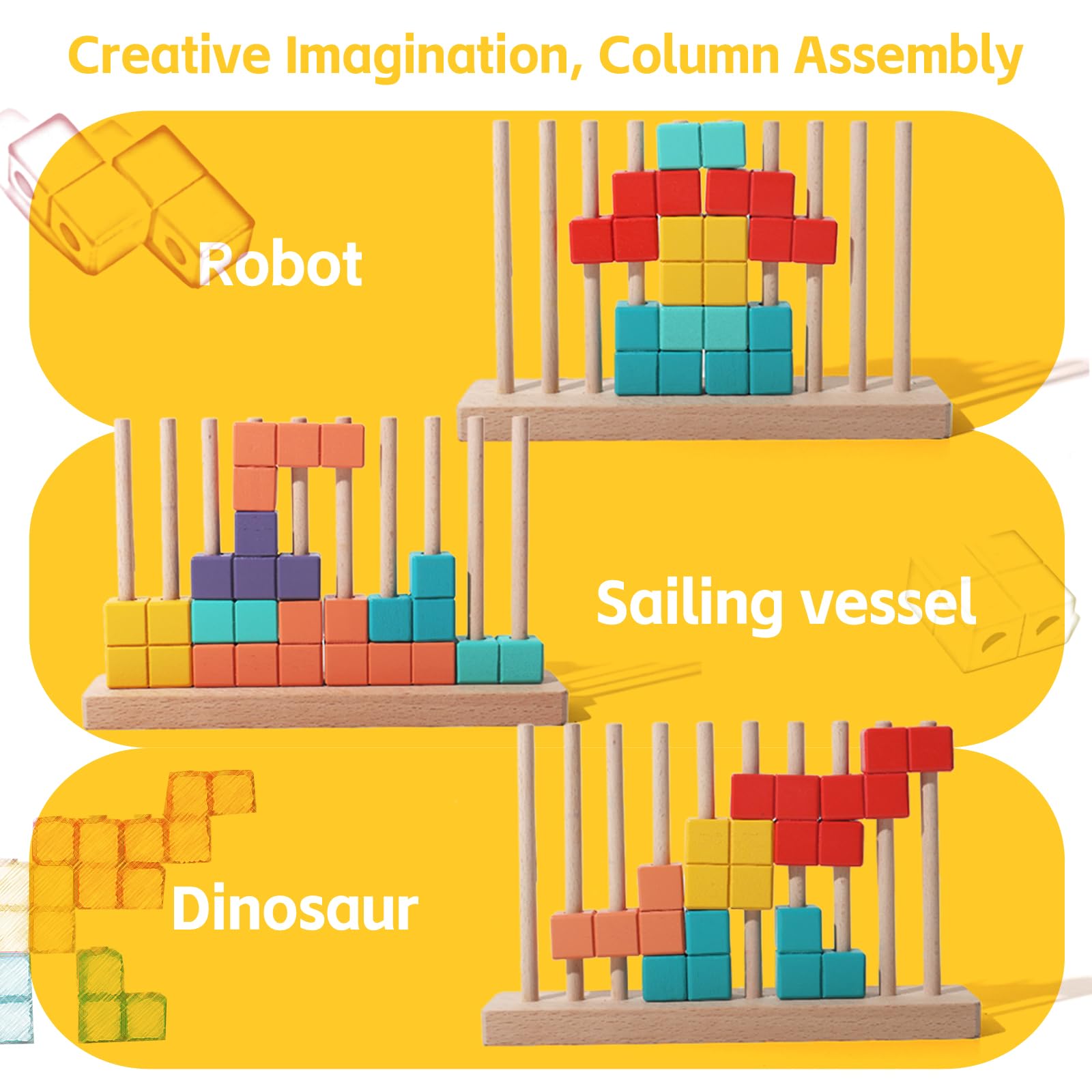 - EDUCATIONAL STEM TOY: Colorful wooden building blocks designed to cultivate spatial concepts, logical thinking, and problem-solving skills through hands-on play and creative construction