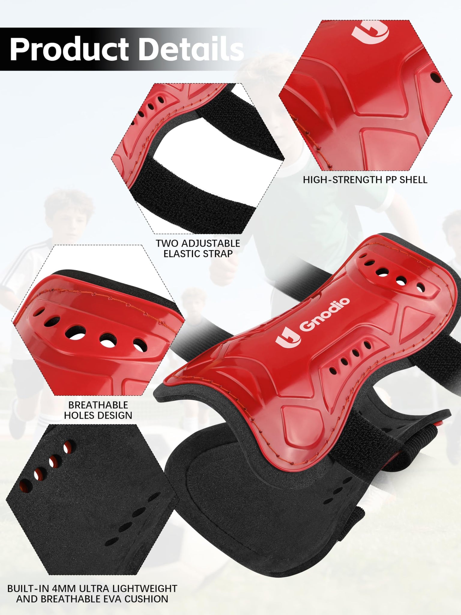 - UPGRADED DUAL-STRAP SYSTEM: Kids shin guards feature two newly upgraded high-elastic, wear-resistant nylon straps that securely fasten to both the upper and lower parts of the tibia. Flexible adjustment ensures a comfortable, snug fit. Simply put on the shin guards first, then the soccer socks—this double-layer protection effectively prevents the guards from slipping