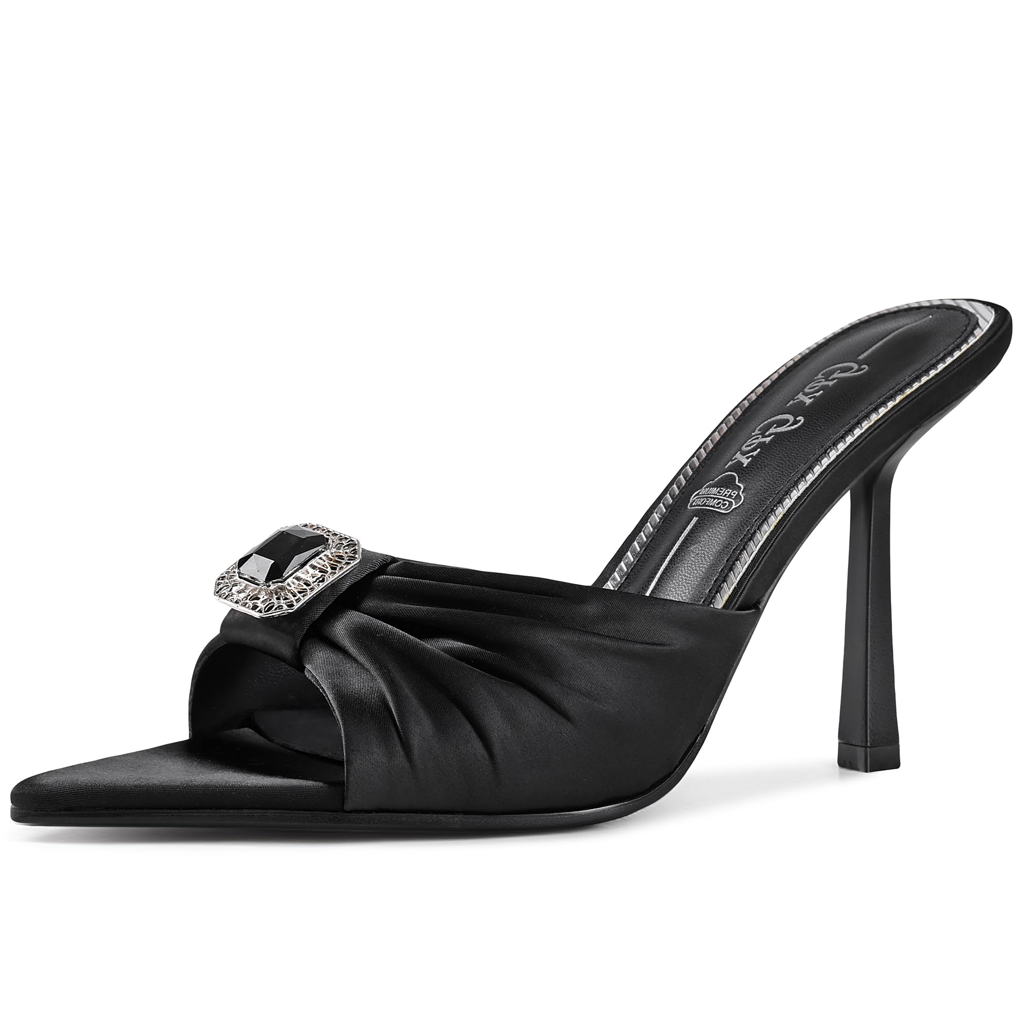 - Chic & Contemporary Design : These ruched upper heeled sandals showcase a modern pointed open-toe design, beautifully accented with delicate rhinestone details for a touch of glamour and sophistication