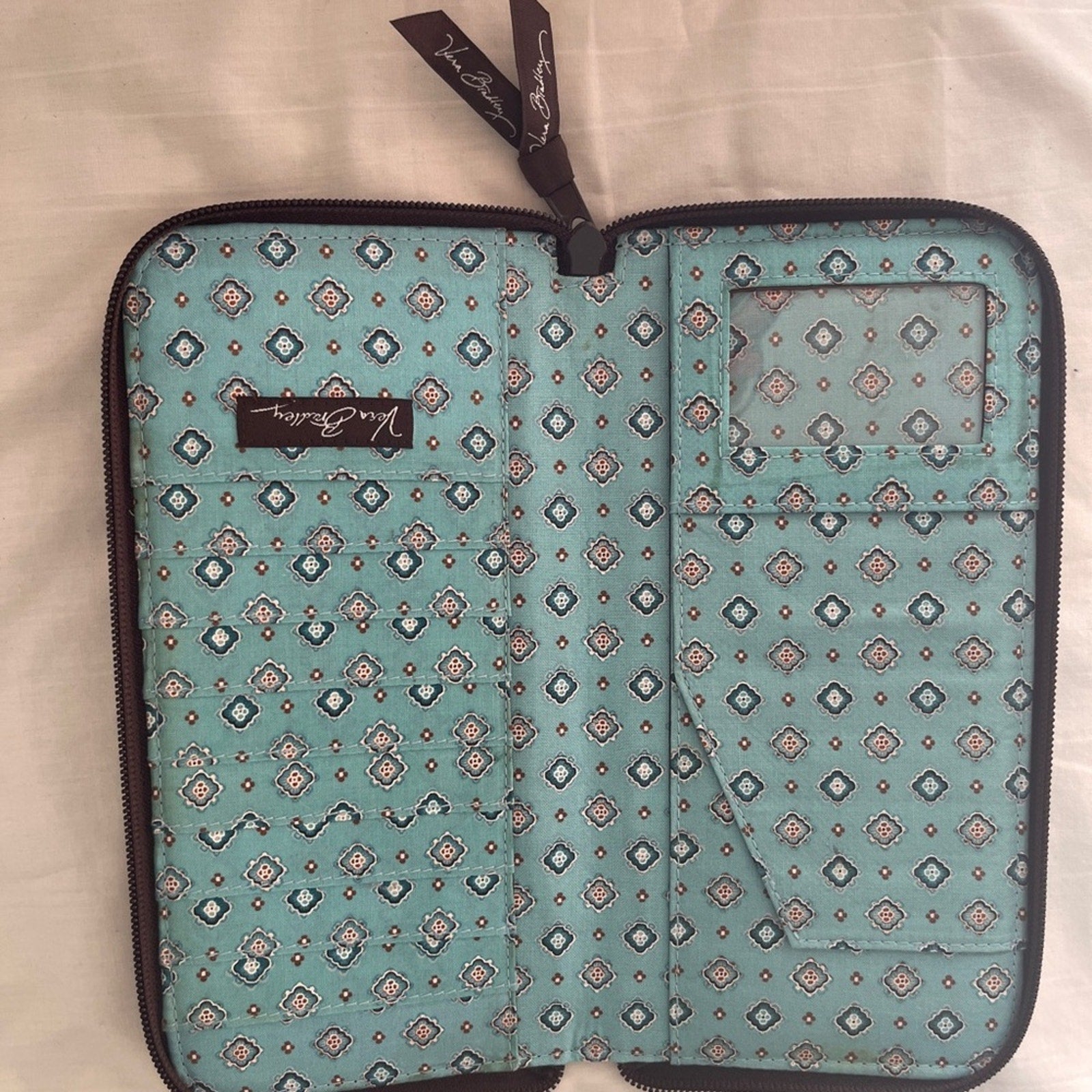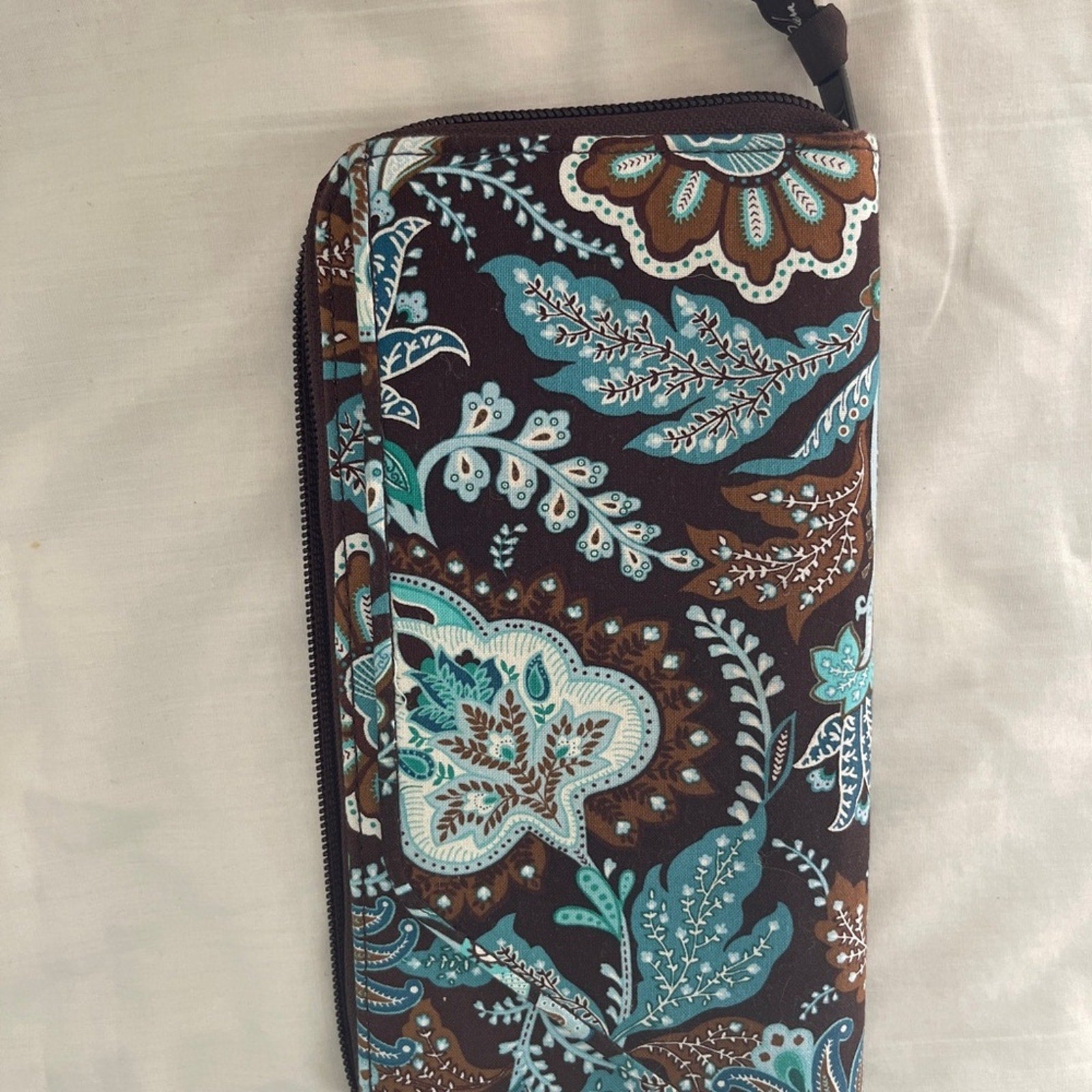 Vera Bradley Brown and Teal Floral Paisley Quilted Wallet with Zipper
