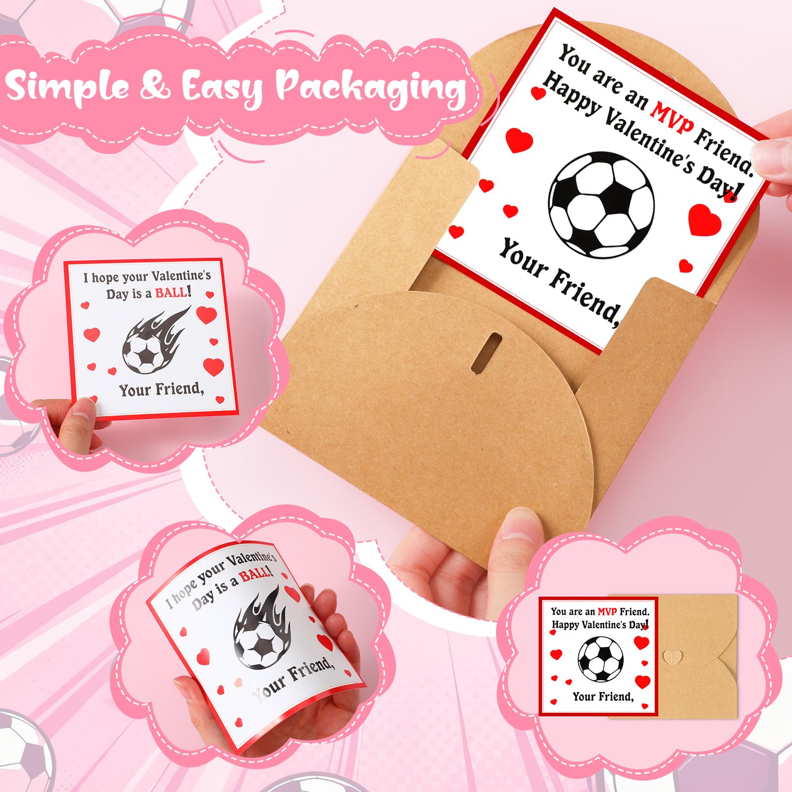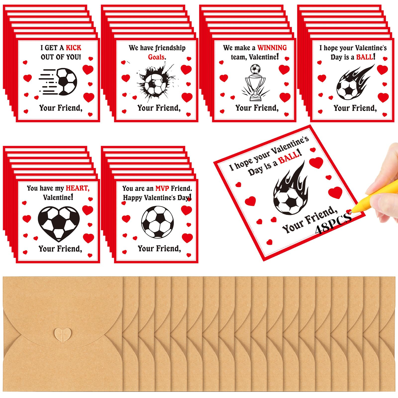 - Valentine's Day Soccer Cards for School: this kids Valentine's Day cards bulk will be a standout addition to your Valentine's Day gifts; Each classroom cards include 48 soccer themed valentine cards with 48 envelopes for boys girls; Kids can mix and match to create their very own valentines exchange cards, adding a personal touch to every Valentine's card
