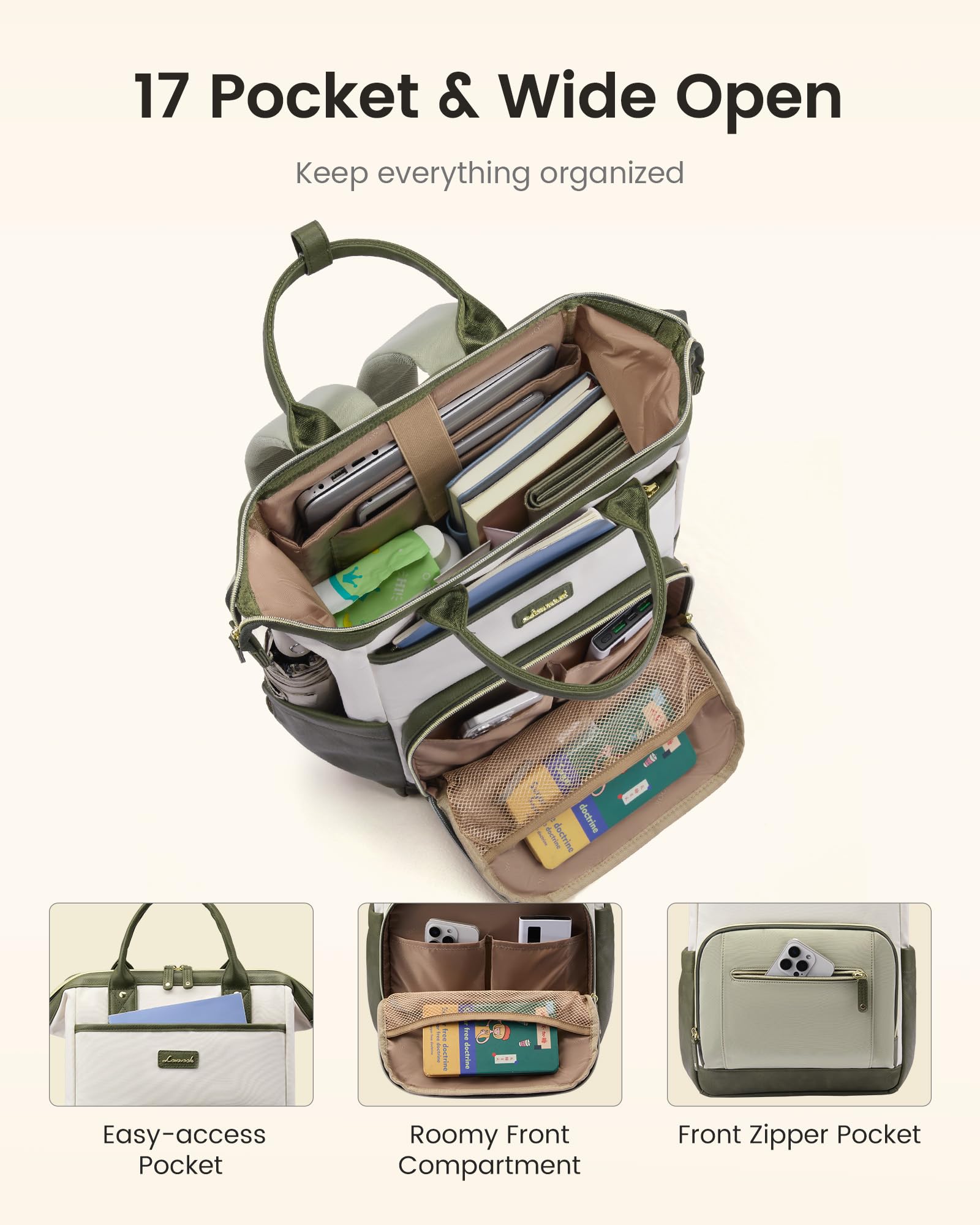 - 【Multi-Pocket Design & Padded Laptop Compartment】 Can stand perfectly upright. No More Black Hole Work Backpack! 17 specialized compartments and pockets keep work gear and personal essentials perfectly sorted. Dedicated padded compartments. This computer laptop bag for women features a padded laptop sleeve for excellent impact protection, ideal for work, business, travel, or everyday use.