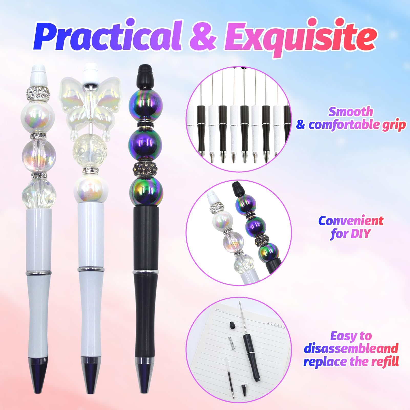 - Comfortable for Extended Use: these pens are lightweight and designed to reduce hand fatigue. shape ensures a secure grip, making them ideal for students and adults. With bead compatibility, they work seamlessly with various pen beads, allowing for easy customization. Whether for personal crafting, school assignments, or as part of your beaded pen supplies, these pens offer convenience and style,office accessories