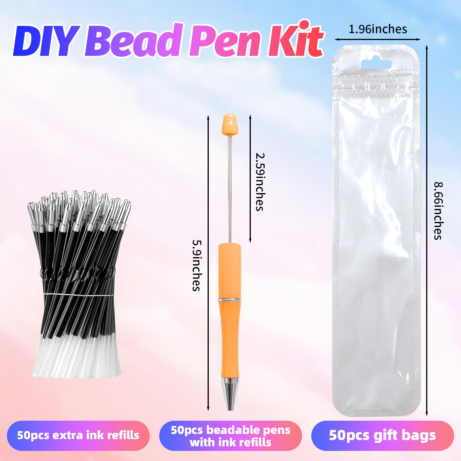 - Complete DIY Beadable Pens Kit: This beaded pen kit includes 50 beadable pens bulk, pen bags, and easy-to-replace ink cartridges, making it a perfect choice for diy pens projects. Designed for beginners and craft lovers, the set features 10 colors and smooth black ink. Crafted with a sturdy build, these pens ensure durability and a premium writing experience. Whether for journaling, crafts, or school projects, this set is a valuable addition to your supplies.