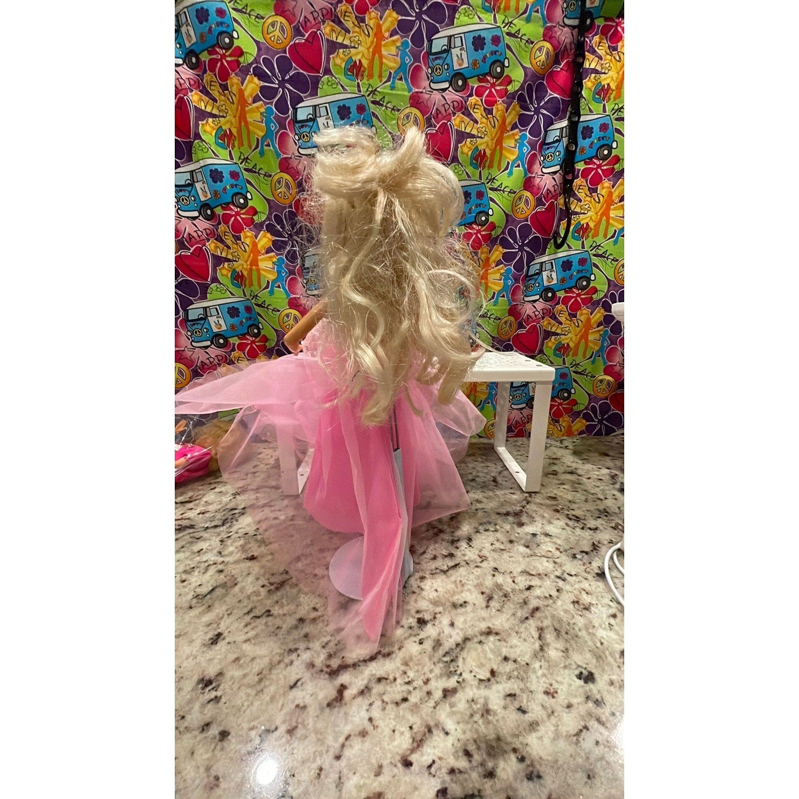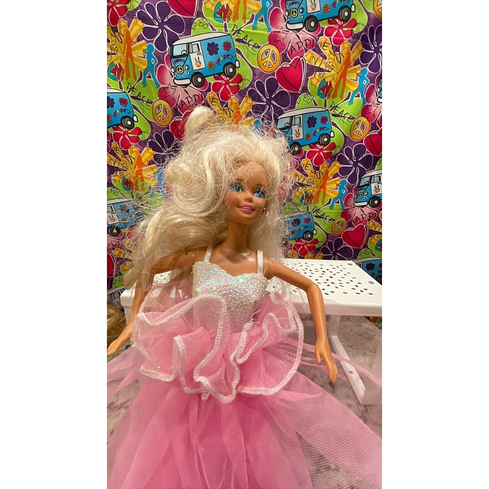 She is wearing a pretty pink tutu dress, perfect for any Barbie enthusiast or collector!